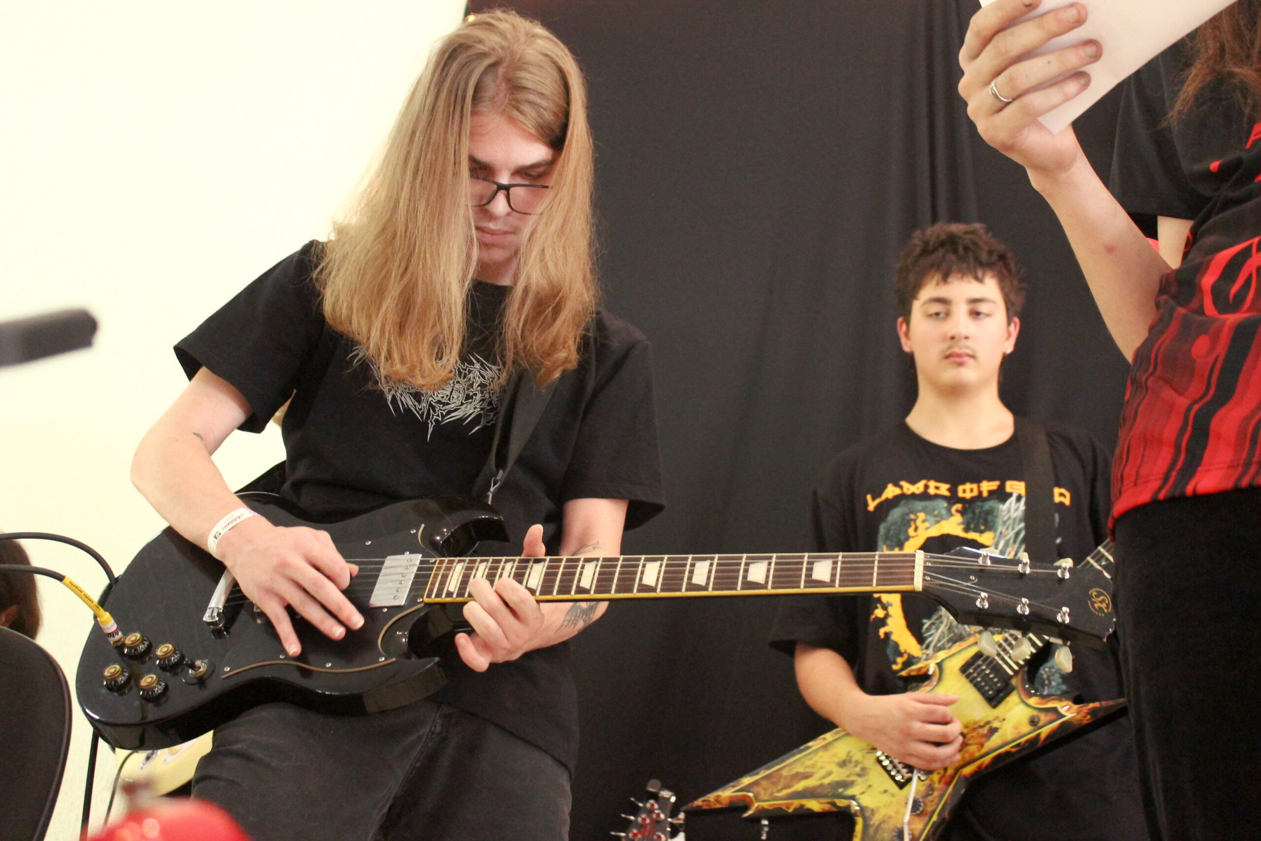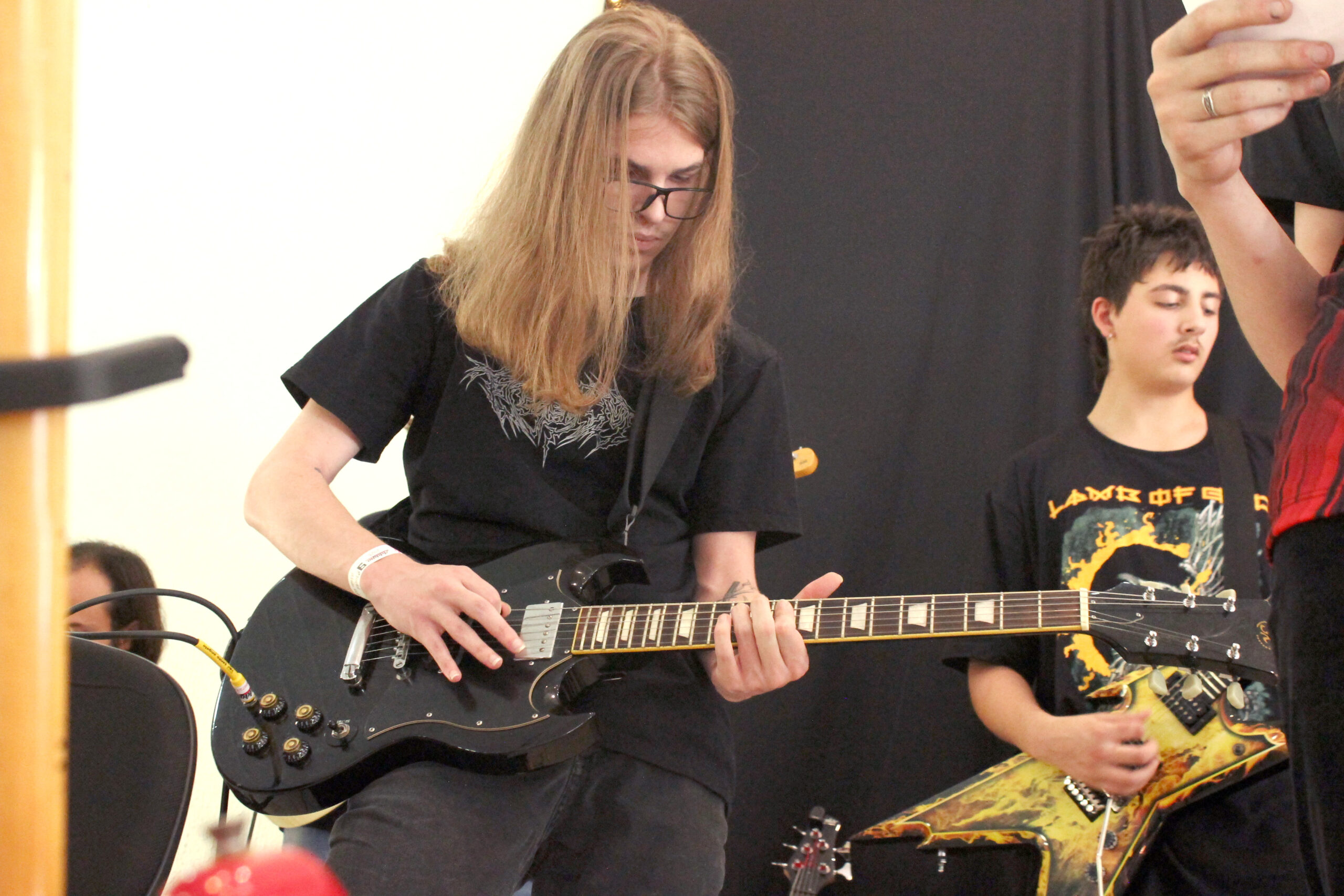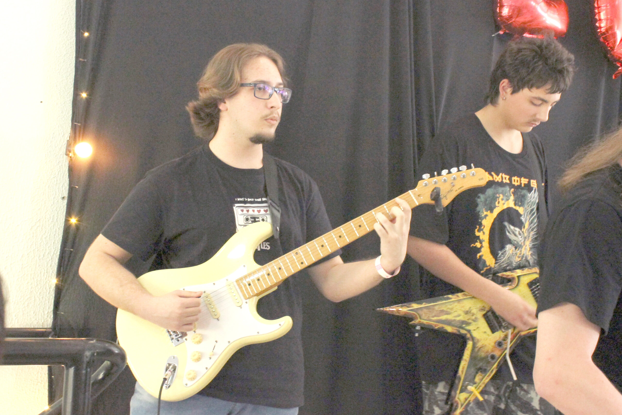 As aulas de guitarra são personalizadas conforme o nível do aluno. Trabalhamos técnica de palhetada, acordes, escalas, improvisação, leitura, timbre e aplicação prática em músicas reais.